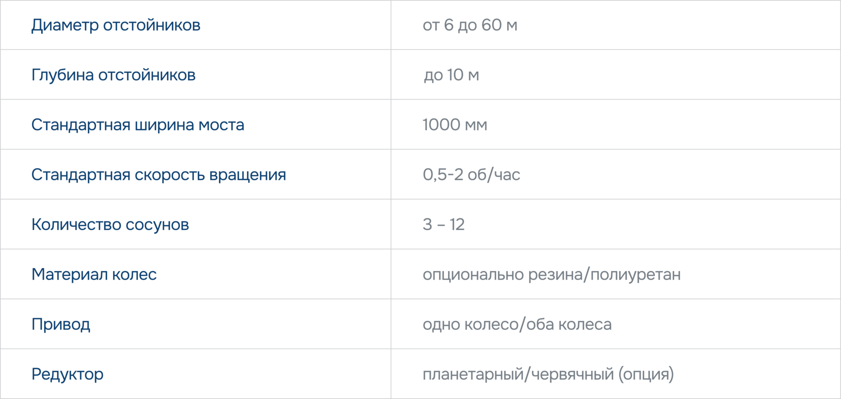 Конструкция илососов спроектирована на основе расчетов математических моделей гидродинамики радиальных отстойников.